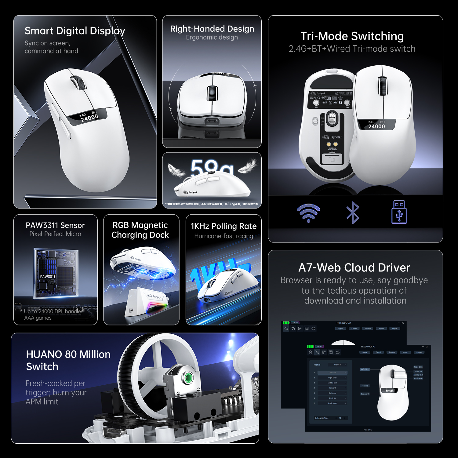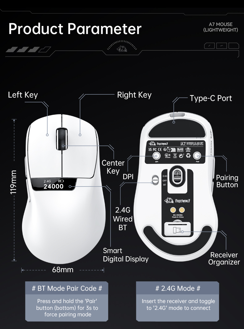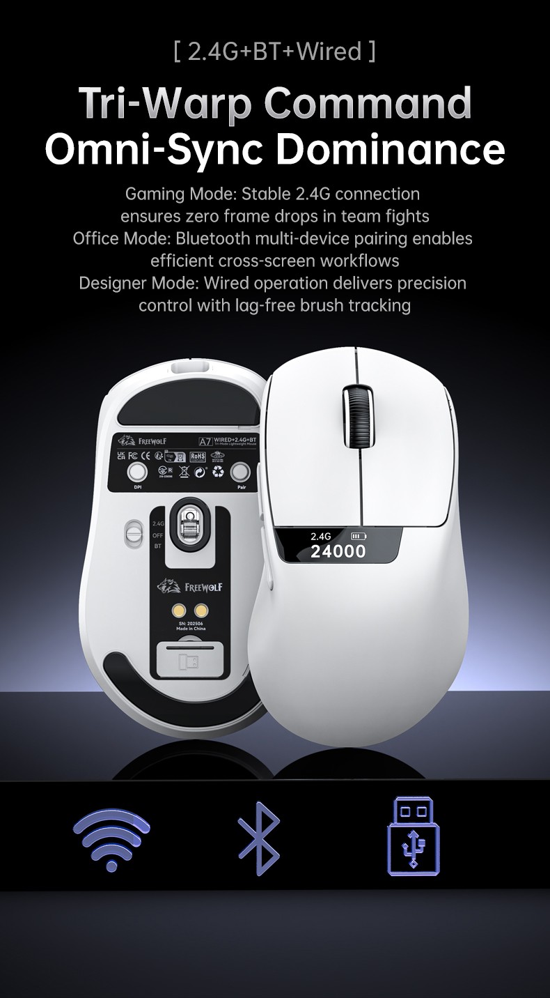Беспроводная мышь FreeWolf A7 с трех режимами работы